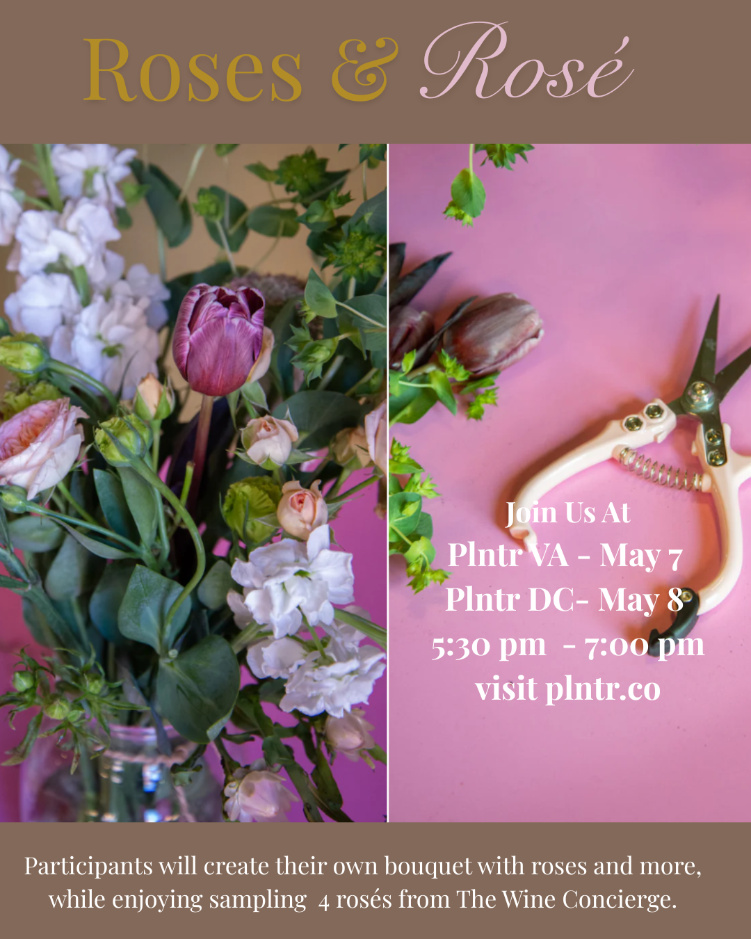 Participants will create their own bouquet with roses and more, while enjoying a sampling fof four rosés from Wine Concierge. at PLNTR-DC Dupont Circle 1825 18th Street, NW Washington, DC